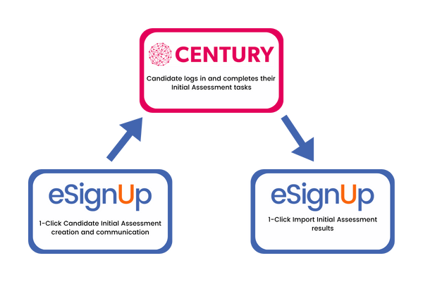 Connecting your eSignUp to CENTURY will enable you to create Candidate user accounts for Initial Assessment with just 1 click! Your Candidates are automatically sent a customised email from yourselves to request completion of the Initial Assessment activities required, and their login details to do so.