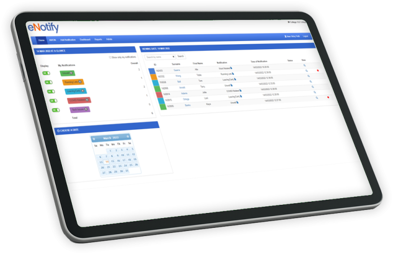 eNotify has a great range of features to enable you to keep on top of student attendance issues and any safeguarding concerns.