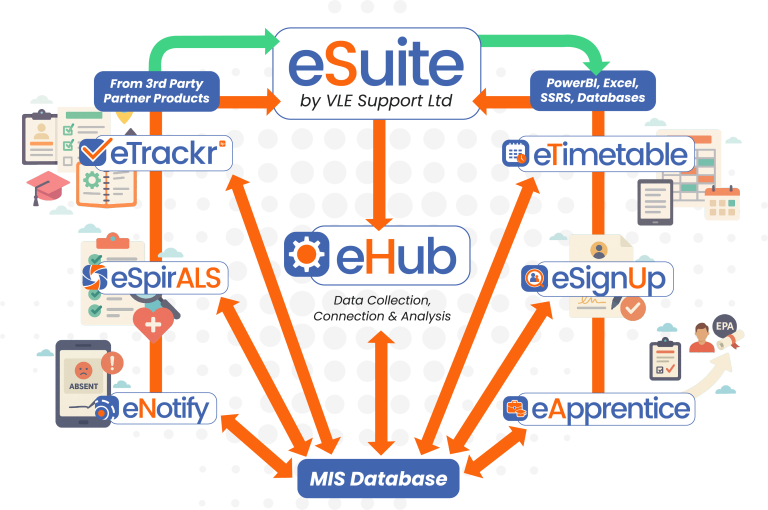 eSuite brings together VLE Support’s family of great software products for the FE, Training Provider and HE sectors …putting incredible data analysis at your fingertips.